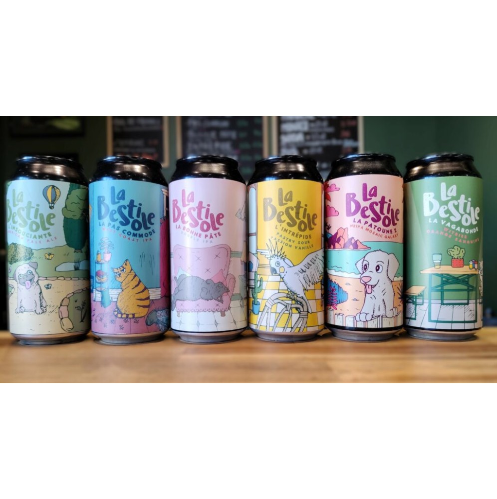 Depuis mars 2023, la Brasserie La Bestiole produit des bières craft généreusement houblonnées et les met dans des canettes aux visuels colorés. Chaque recette est pensée spécialement en l’honneur d’une bestiole qui nous entoure. Pourquoi ? Parce que c’est un gros kiff de mettre nos chats sur les canettes !
