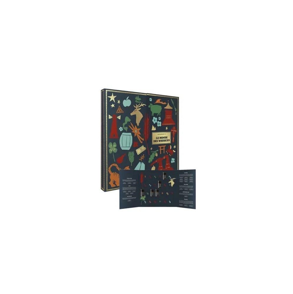 Invitation au voyage, ce coffret réunit 25 références en provenance d’Écosse, d’Irlande, des États-Unis et du Japon, mais aussi de France, du Pays de Galles, d’Inde, de Taïwan ou encore d’Australie. Élaborés selon des techniques et à partir de céréales variées, ces whiskies mettent en lumière la pluralité des terroirs et des styles de production à travers le monde. La sélection rassemble des marques emblématiques comme The Dalmore ou Nikka Whisky, et des distilleries plus confidentielles et des producteurs de référence tels que Arran, Willett ou encore Armorik. Chaque dégustation (fioles de 2 cl) est accompagnée d’une masterclass en ligne, accessible via un QR code, pour un voyage guidé.