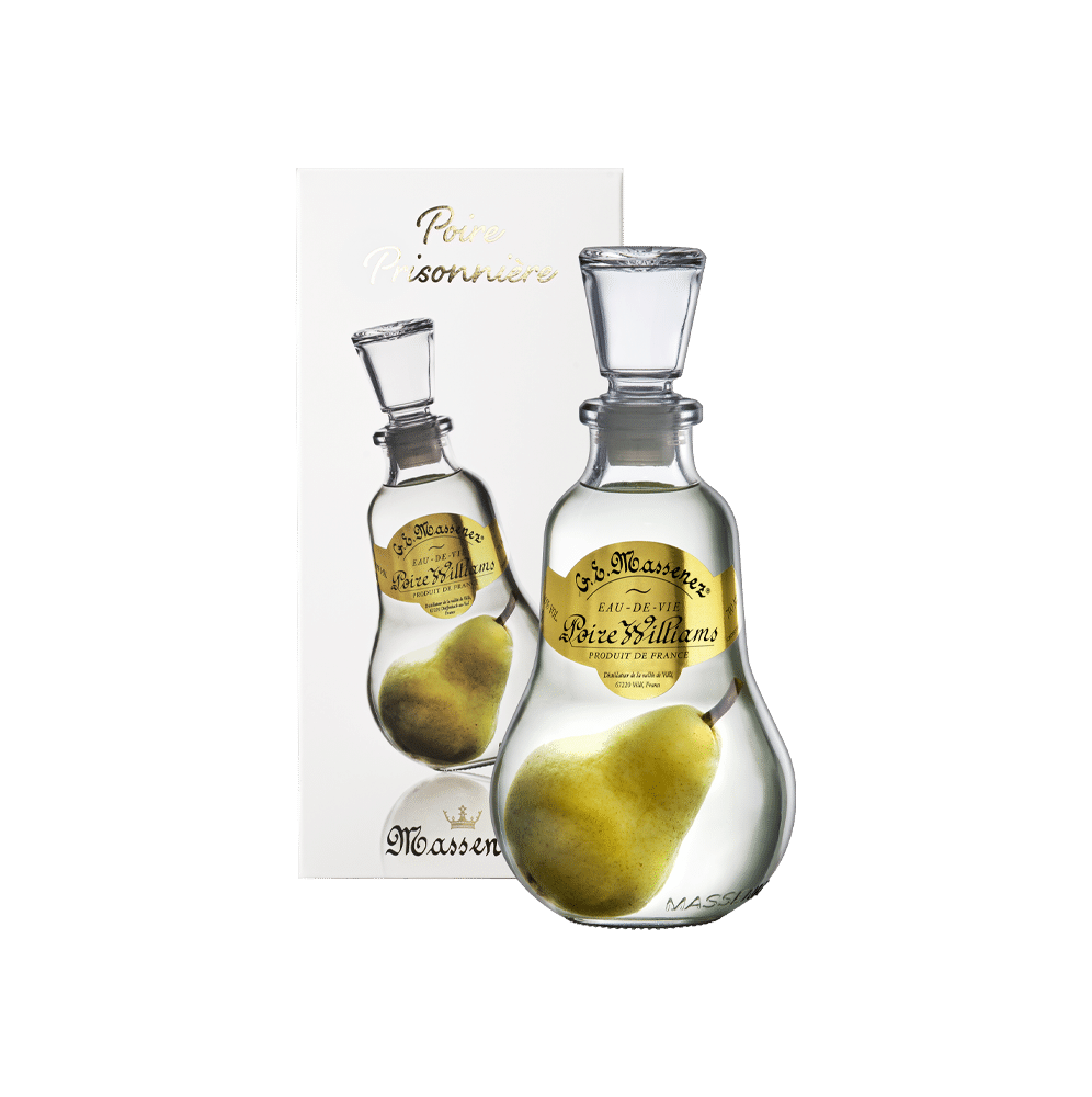 La Poire Prisonnière fascine, tant par ses qualités gustatives et olfactives que par sa bouteille forme poire emprisonnant la poire à l’intérieur. La saveur de la poire est intense et apporte une grande fraîcheur. Finesse et élégance caractérisent cette Eau-de-Vie Signature. Un incontournable de la Distillerie Massenez.